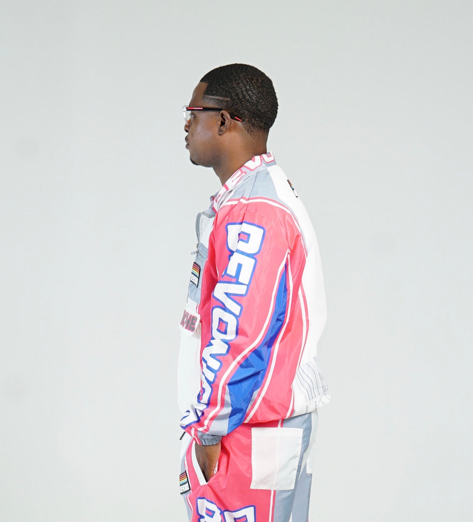 THIS JACKET IS ONE OF A KIND! THE DETAILS ARE ABSOLUTELY AMAZING ON THIS JACKET. 4 TOTAL POCKETS WITH YOUR CUSTOM DEVONICHE STUDIO ZIPPER. DETAILED FOLD DOWN COLLAR, RUBBER LOGO, AND HAVE ADJUSTERS ON THE BOTTOM OF THE JACKET.