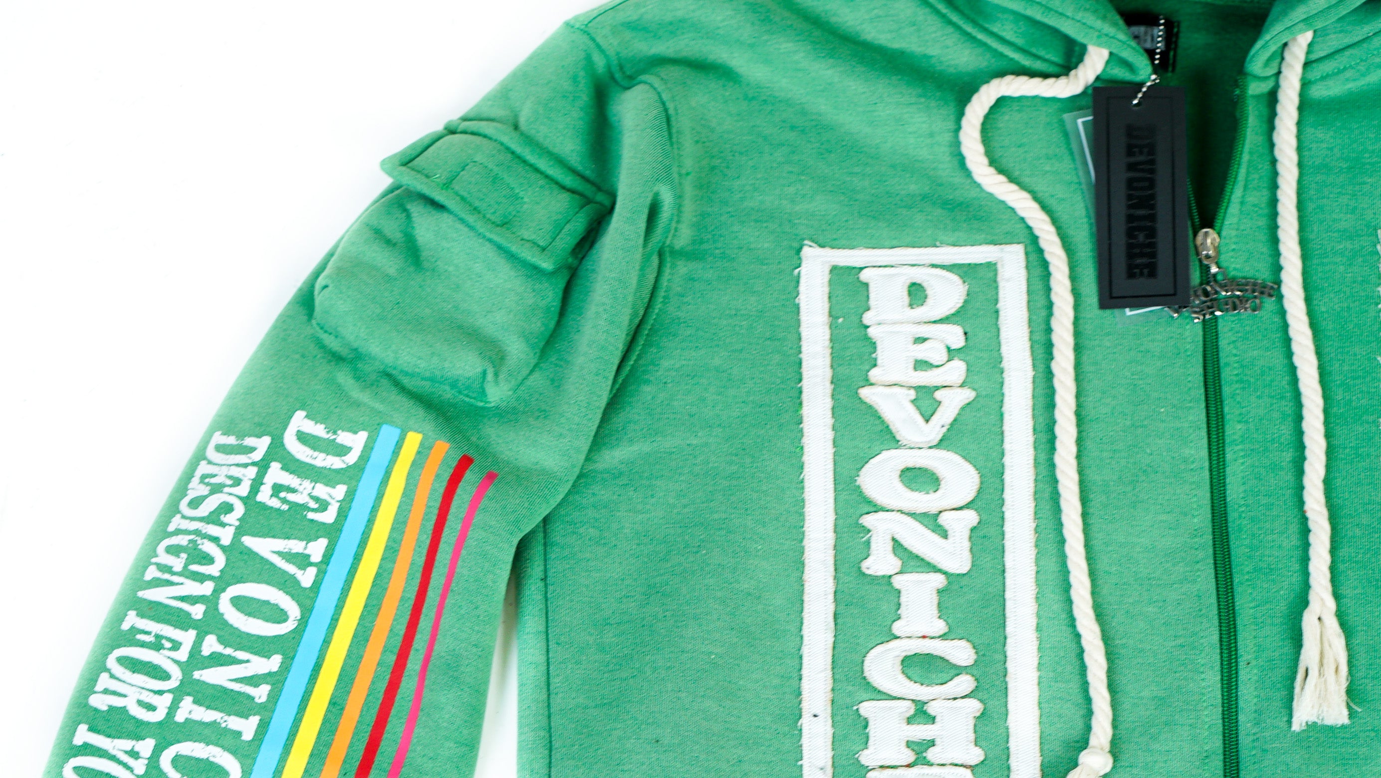 THIS JACKET IS ONE OF A KIND! 100% FRENCH TERRY COTTON SO SOFT AND COMFORTABLE. DISTRESSED EMBROIDERY DETAILS WITH CREATIVE ACID WASH FINISHES. 6 TOTAL POCKETS WITH YOUR CUSTOM DEVONICHE STUDIO ZIPPER. DESIGN FOR YOU!