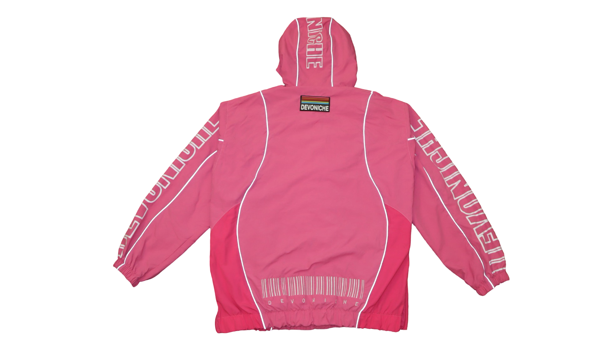 Signature Branding: Features high-density "DEVONICHE" screen-printed lettering across the sleeves, torso, and hood.