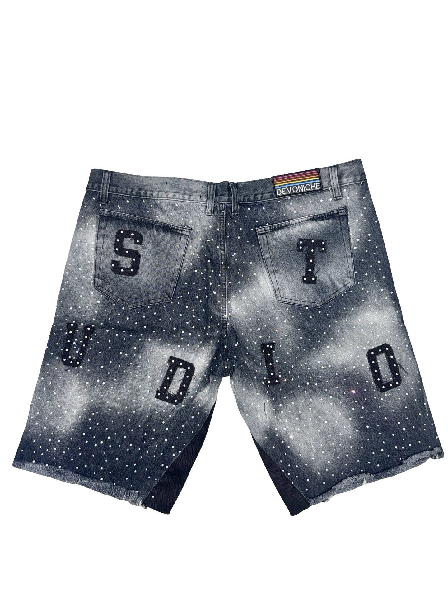 • Bold Branding: Oversized, textured denim blue letters spell out "Devoniche" across the front and “Studio” across the back making an unmistakable brand statement.
